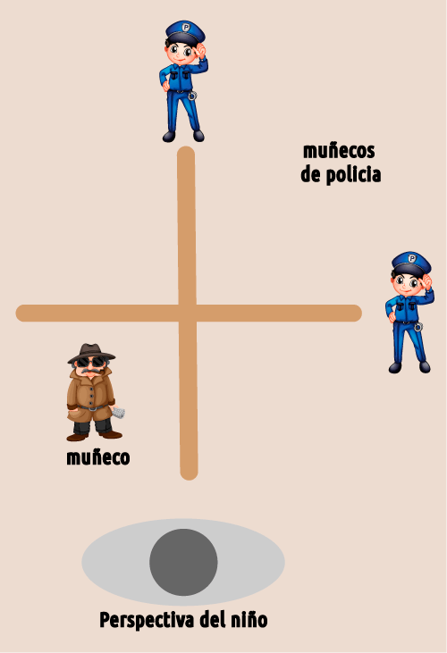Se le pedía al niño que escondiera el muñeco de ambos policías, en otras palabras, tenía que tener en cuenta dos puntos de vista diferentes.